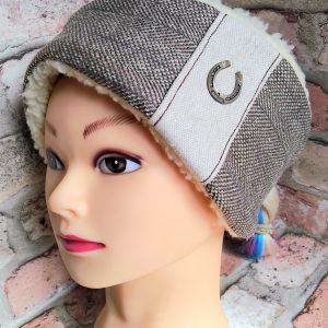 Brown Herringbone Tweed Ear-warmer with Horseshoe detail M/L