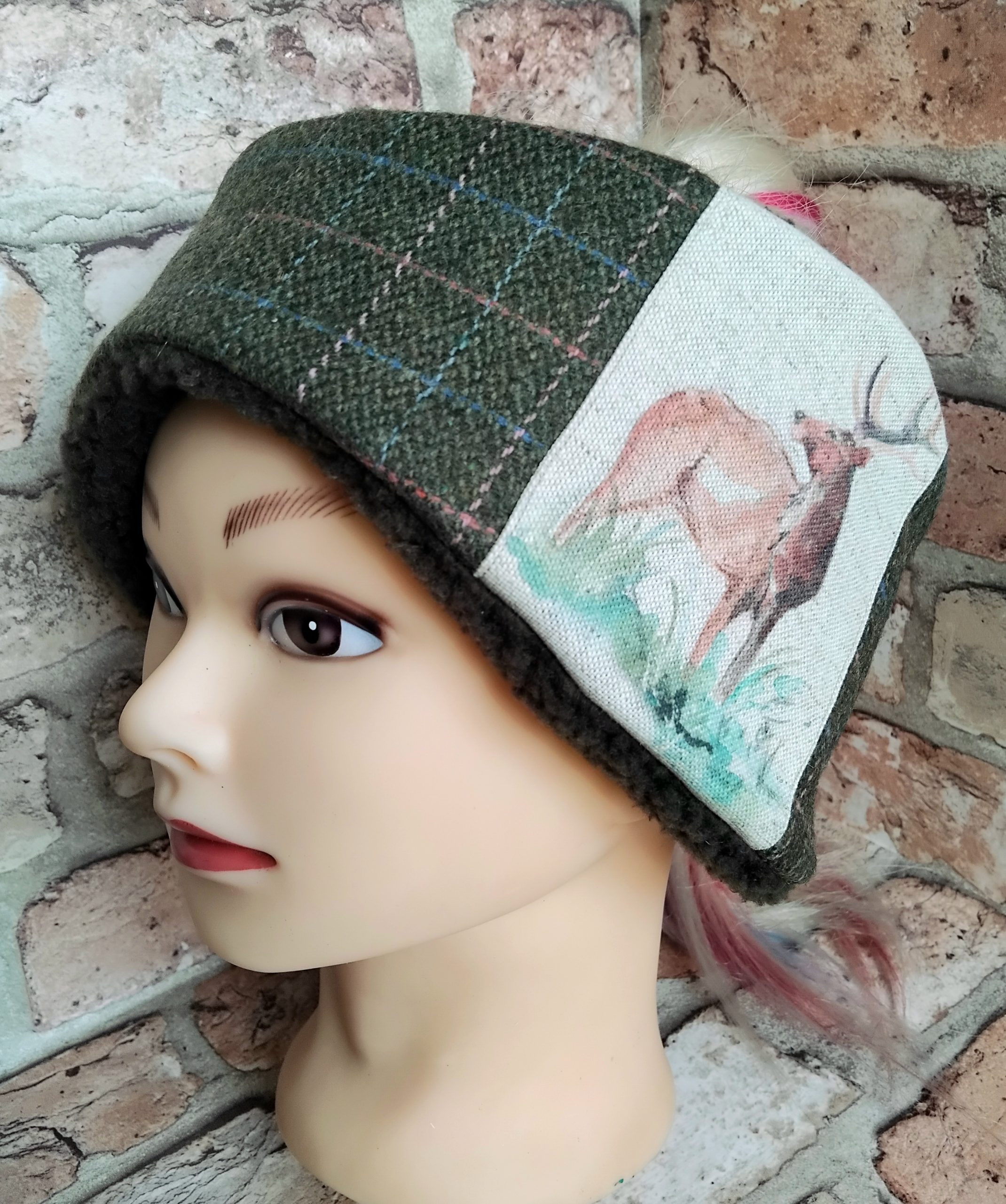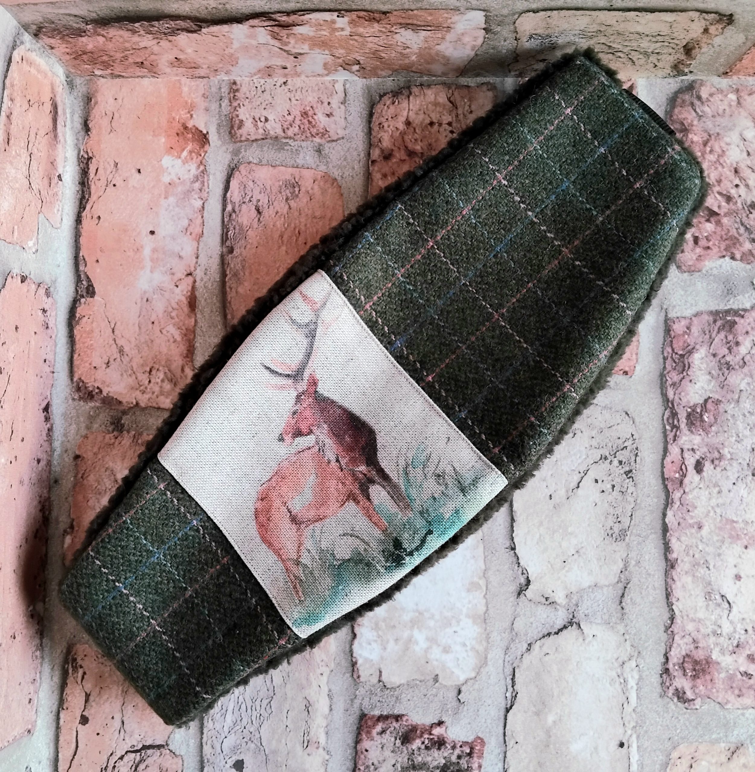 Be the first to review “Hunter Green Checked Tweed Ear-warmer with Stag detail M/L”