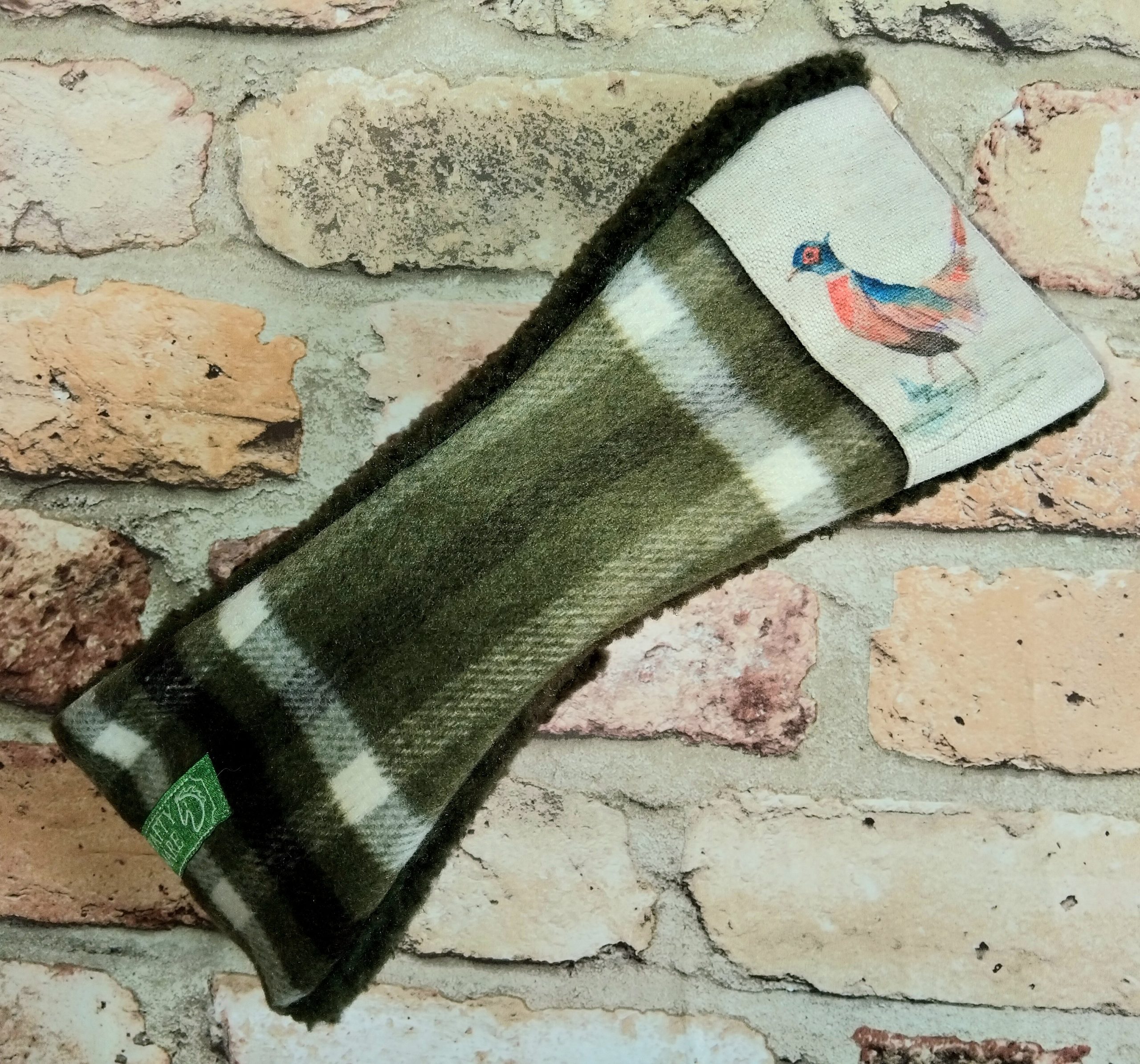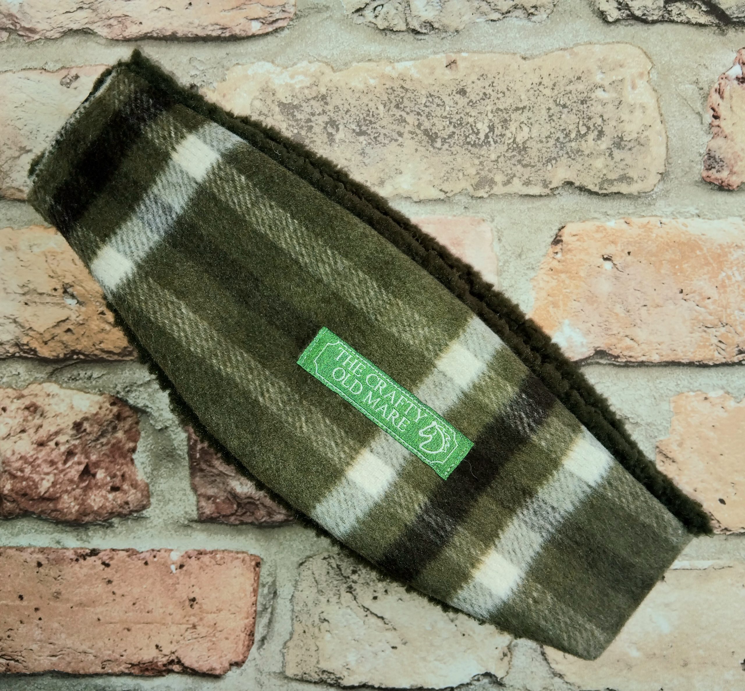 Khaki Checked Brushed Wool Ear-warmer with Pheasant printed detail; Toddler size.