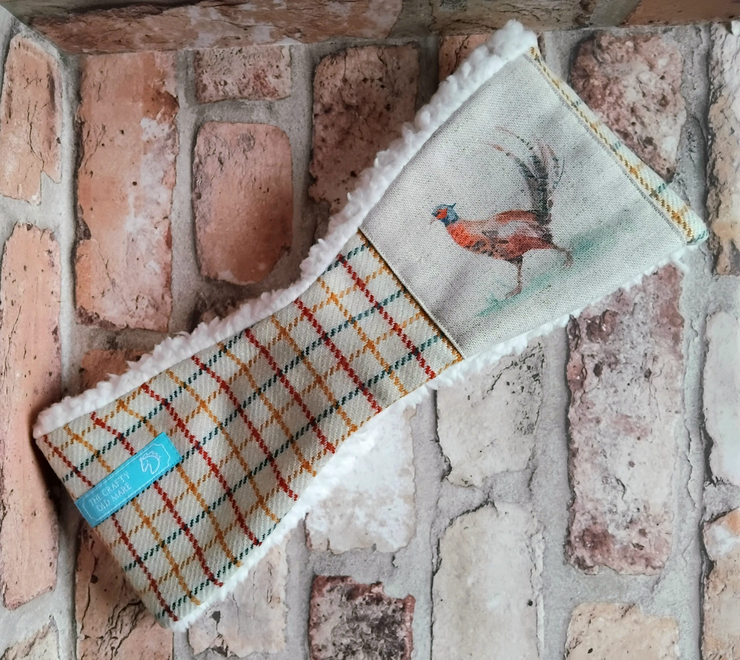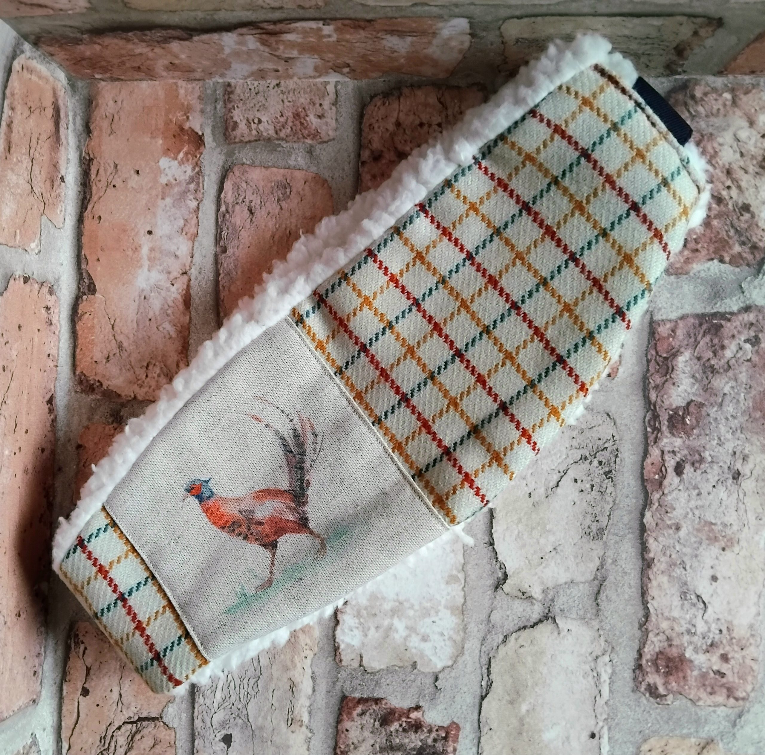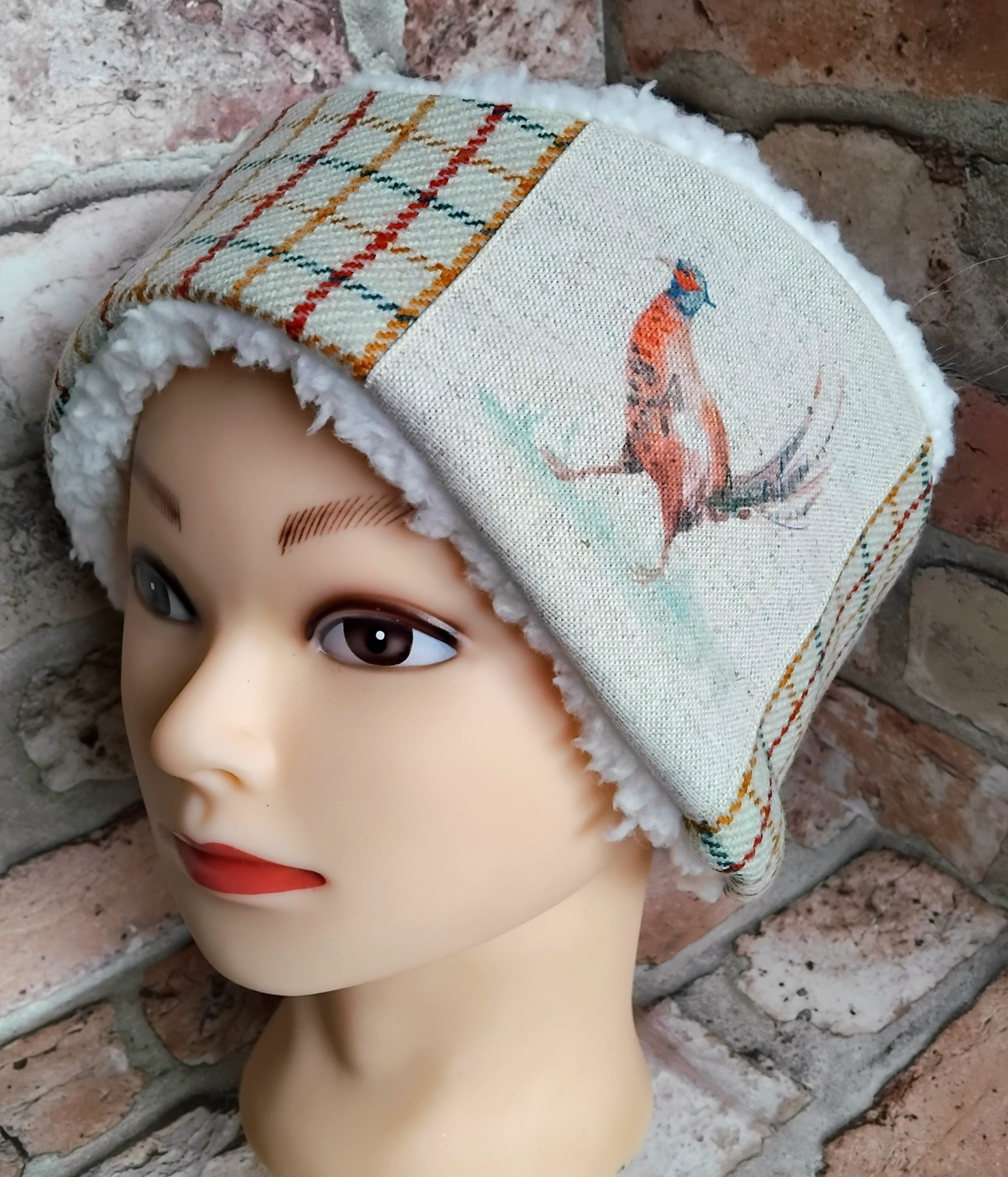 Tattershall Checked Wool Ear-warmer with Pheasant printed detail; size M/L.
